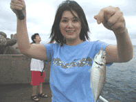 本日は天気が悪かったので、お客様も少ないかと思いきや、 沢山のお客様が釣り場に足を運んでくださいました。 写真は少々少なめですが、内容は濃いでしょ!! それにしても今年はグレがとても多いですね。サビキでも かなりの確立でそこそこのグレが釣れちゃうくらいです。 サビキで十分に撒き餌が効いてくると、ウキ釣りの方にも チャンスがやってくるようです。 それにしても今日の最後のグレは凄かったです。 タモ無で一気に引き抜いちゃうあたり、 お母さん只者じゃないです。 本日は悪天候の中皆様お疲れ様でした。(8月17日撮影) |