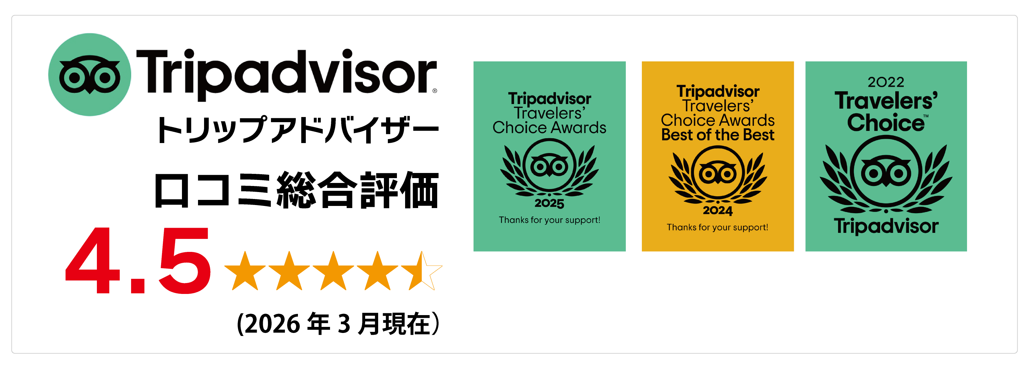 昨年に引き続き、本年度も「トリップアドバイザー・トラベラーズチョイス2025」を受賞することができました。