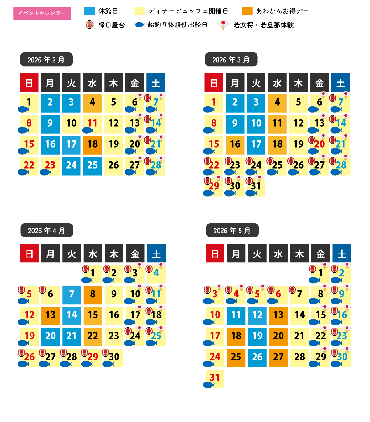 2026年2月~5月 休館日&イベント日のご案内
