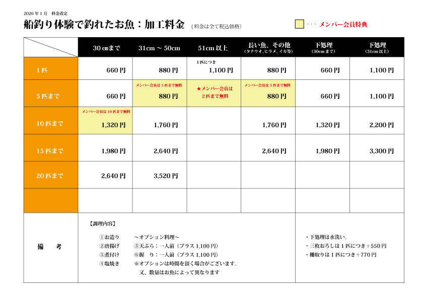 釣り魚加工料金2026年版