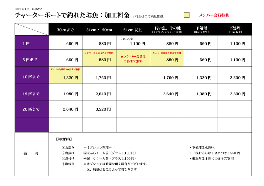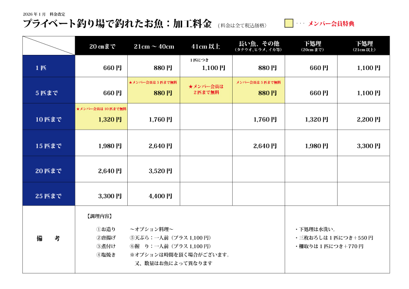 他で釣られたお持ち込みの魚調理につきましては問い合わせください。
